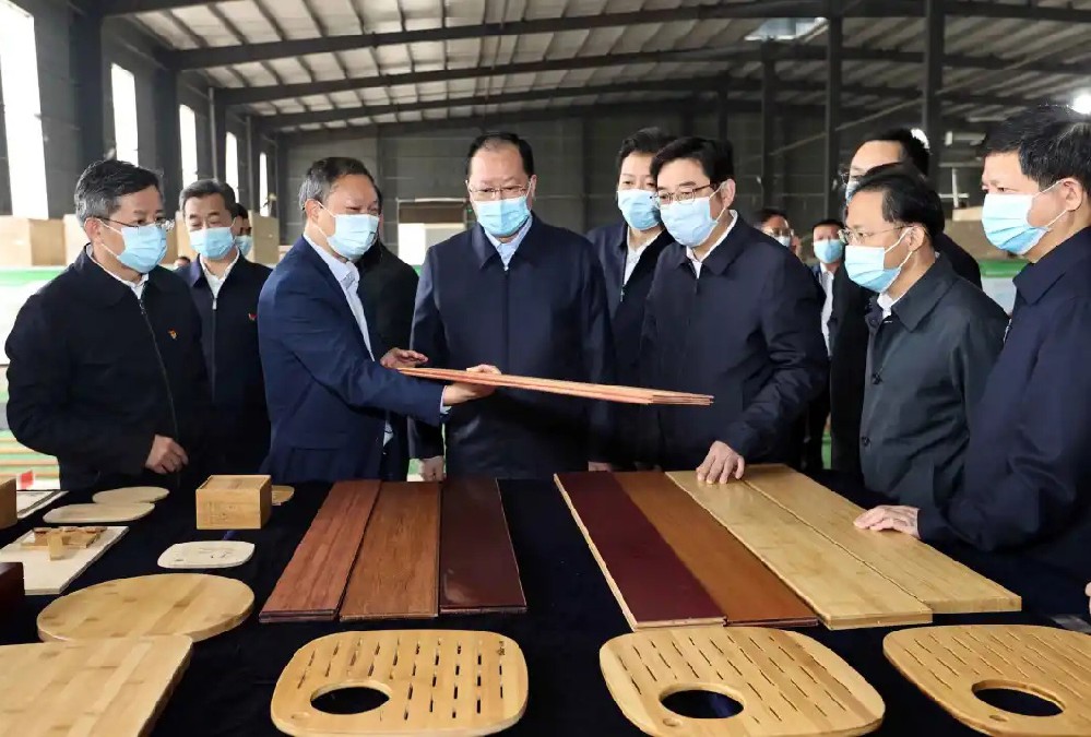 2025年6月16日,省政協(xié)副主席虢正貴來湖南桃花江竹材科技股份有限公司調(diào)研生態(tài)資源轉(zhuǎn)化與特色產(chǎn)業(yè)融合發(fā)展。公司董事長、省人大代表薛志成陪同并介紹情況。虢正貴充分肯定了桃花江竹材在竹資源利用及竹特色產(chǎn)業(yè)融合發(fā)展所取得的成果,他鼓勵(lì)企業(yè)繼續(xù)發(fā)揮龍頭優(yōu)勢(shì),充分利用好桃江資源稟賦和產(chǎn)業(yè)優(yōu)勢(shì),深化產(chǎn)學(xué)研融合,提升竹產(chǎn)業(yè)附加值,為民族地區(qū)生態(tài)資源高效轉(zhuǎn)化和特色產(chǎn)業(yè)融合發(fā)展探索更多經(jīng)驗(yàn)。